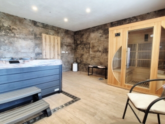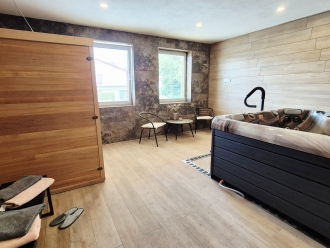 Využít můžete vířivku až pro 5 osob a saunu.
